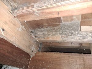 柱や壁を叩いた時に空洞音がしたり、羽アリの大量発生、蟻道の発見。壁や柱のひび割れなど。