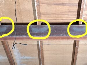 …歯が伸び続けるネズミが、柱、壁、電気コード、家具などをかじった跡。
